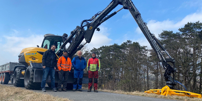 Der neue Mobilbagger mit Mähkorb des Rheinunternehmens ermöglicht künftig einen besonders schonenden und ökologischen Unterhalt der Rheindämme – auch zum Erhalt und zur Förderung d...