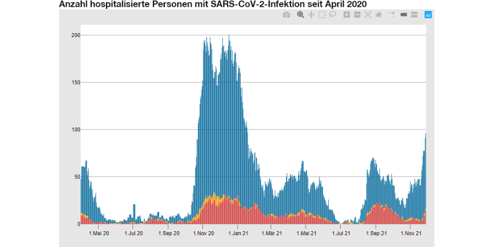Die Auslastung der Intensivstationen in den Spitälern beträgt zurzeit 82,1 Prozent. 26,9 Prozent der verfügbaren Betten werden von Covid-19-Patienten besetzt.