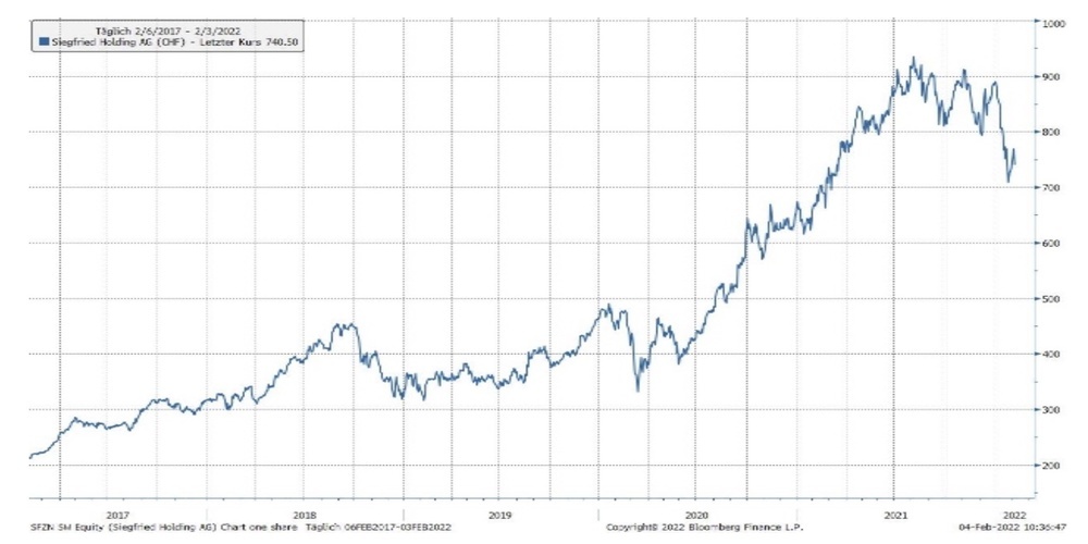 «Die Siegfried Gruppe ist im Bereich Life Science tätig. Das Unternehmen bietet massgeschneiderte Dienstleistungen in der Entwicklung und Produktion von Pharmawirkstoffen (Division Drug Substances) an. Das zweite grosse Geschäftsfeld, Drug Products, ist auf die Produktion, die Zulassung und die Logistik von Medikamenten spezialisiert. Der Konzern hat gute Halbjahreszahlen 2021 geliefert. Der Umsatz konnte um 20.3% auf CHF 466.9 Mio. gesteigert werden. Der Core-EBITDA lag bei CHF 80.5 Mio. (Vorjahr: CHF 58.1 Mio.) und der Core-Reingewinn bei CHF 32.6 Mio.