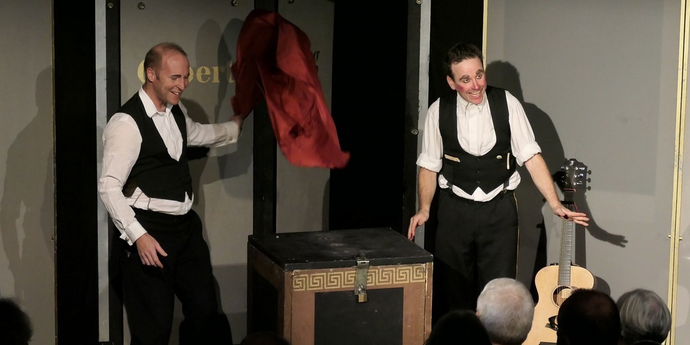 Die beiden Comedians, Clowns oder «Möchtegern-Zauberer» Andreas Vettiger und Dominik Rentsch spielten sich am Samstagabend in wenigen Minuten in die Herzen der Besucher im Diogenestheater. Köstlich die Rollenteilung bei den beiden: während der sichtlich überforderte Gilbert verzweifelt versucht, das Programm zu retten, wird er von seinem anarchischen Gegenpol Oleg ständig sabotiert.