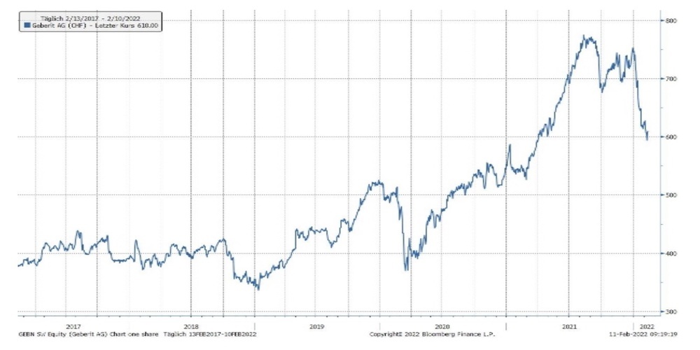 Der vollständige Jahresabschluss wird am 9. März 2022 publiziert. Das Management geht von einer EBITDA-Marge von 31% aus. Gewisse Sorgen machen nach wie vor die Entwicklung der Rohmaterialpreise. Im April 2022 ist eine ordentliche Preiserhöhung vorgesehen. Die Resultate sind Beweis für die Widerstandsfähigkeit des Geschäftsmodells. Seit Jahresbeginn hat sich die Aktie von Geberit unterdurchschnittlich entwickelt. Bei den Aktien handelt es sich um Qualitätstitel. In der aktuellen Marktlage sind die Titel eine solide Investition mit langfristig guten Aussichten.