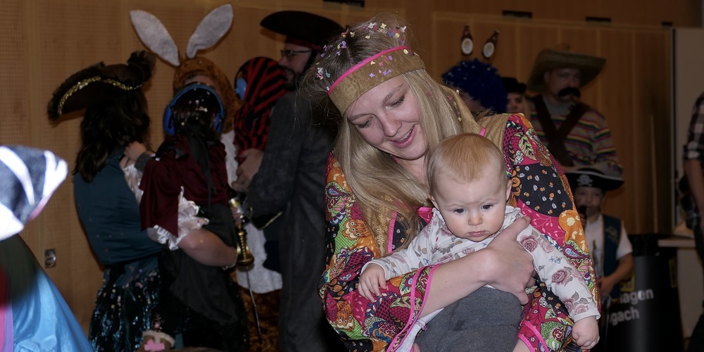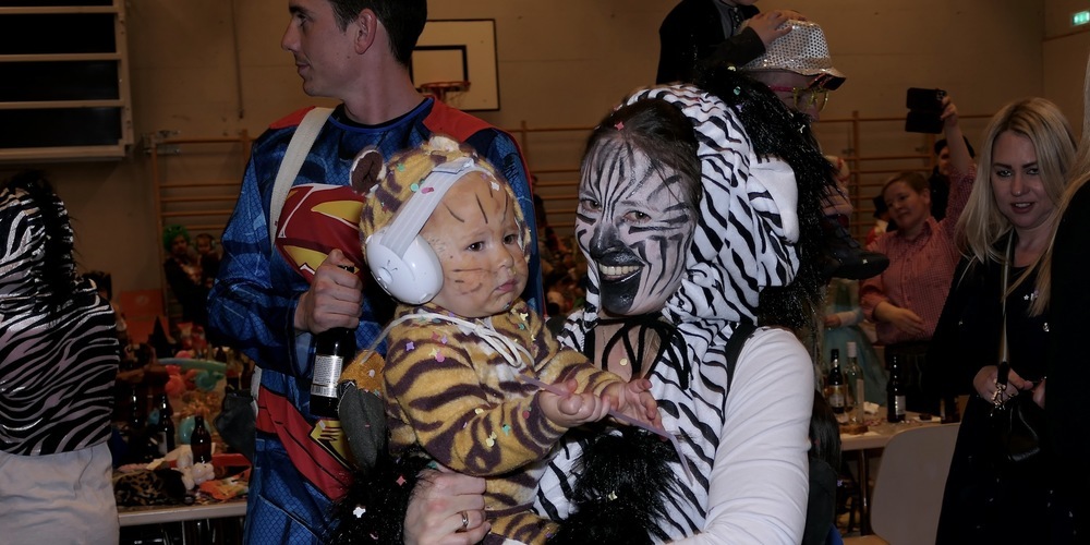 Auch die mitgekommenen Papis und Mamis waren phantasievoll kostümiert. Als Sträfling, Clowns, Cats-Darsteller oder ganz schlicht im Jeansanzug mit Hut als Cowgirl. Eine ganze Familie war samt mit grossen Augen über das Geschehen staunendem Kleinkind als Piraten verkleidet.