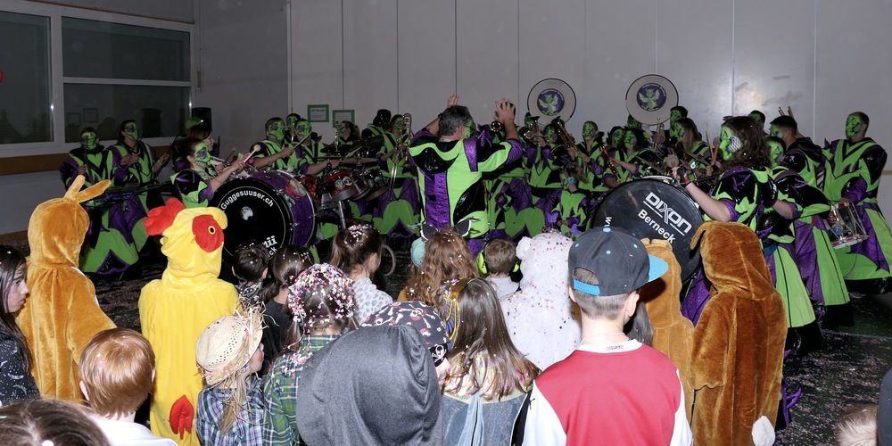 Bevor dann die Guggesuuser mit ihren Krachgeräten den Lärmpegel noch mehr steigern sollten, erzählte Denise Moning von der Gruppe Junger Mütter Balgach von den Attraktionen des Kindermaskenballs: «Im Vorraum haben wir ein Wurfspiel sowie ein Glücksrad mit vielen Preisen aufgebaut.Und in der Halle wird von den Guggesuusern Balgach für Stimmung gesorgt.»