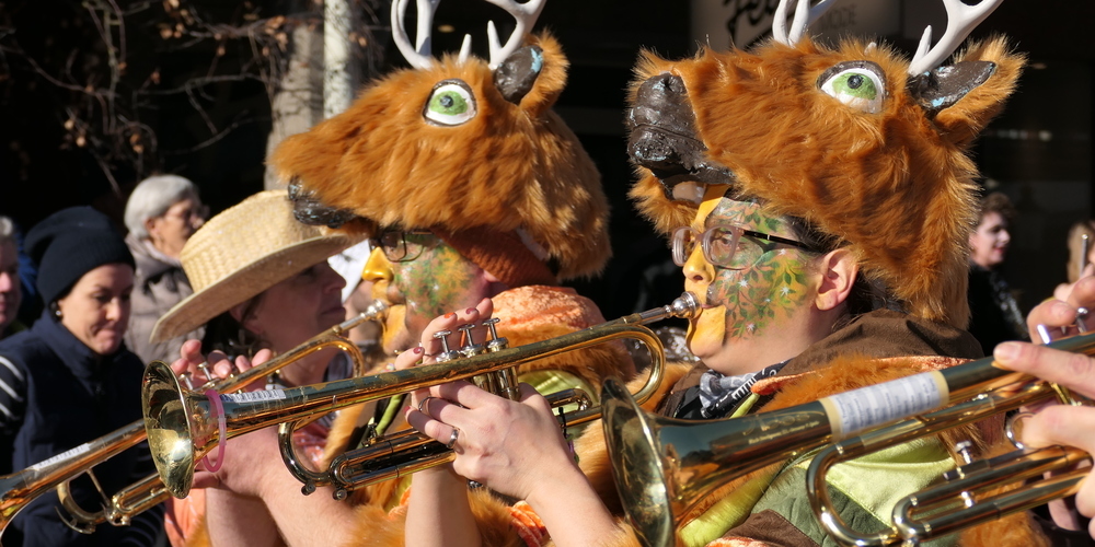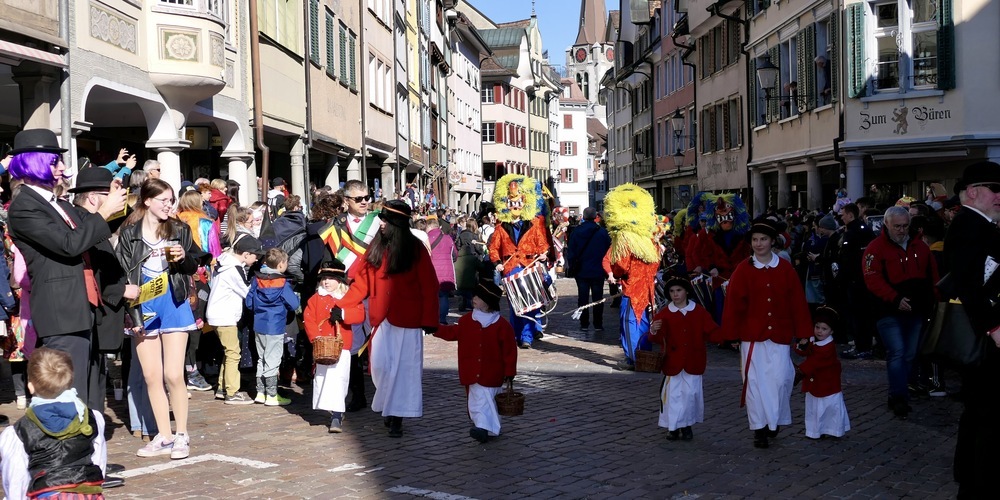 Es war ein bunter, farbenprächtiger Umzug. Bei dem auch die Zuschauer das ihre zum fröhlichen Bild dazutaten. Da konnte man prächtige Kostüme sehen. Eine ganze Zoomenagerie war vertreten. Tiger, Giraffen, Pandas, Waschbären und Zebras gaben sich die Ehre wie weiland im Film «König der Löwen». Nur ein Warzenschwein fehlte.