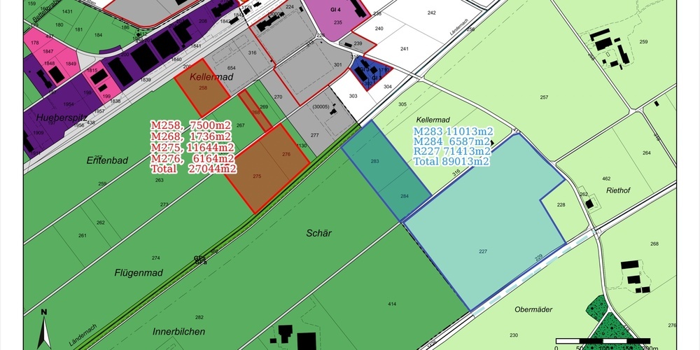 Da die Grundstücke beim Sportplatz Birkenau sofort nutzbar wären und auch entsprechend als öffentliche Zone gewidmet werden könnten, also potentiell um vieles wertvoller sind als die einzutauschende Landwirtschaftsfläche, hat Urban Kobelt der Ortsgemeinde und deren Präsidenten Jürg Hengartner einen Landabtausch zum Faktor 1 zu 3.3 vorgeschlagen.