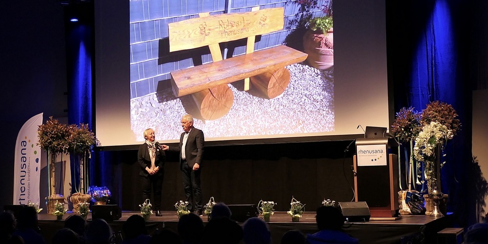 Der langjähriger Moderator, der sein Studium der Philosophie mit Taxifahren finanzierte, durfte dann auch die langjährige Mitarbeiterin Esther Meschenmoser ehren, die mehr als zehn Jahre die «gute Seele» der Rhenusana war. Und dafür ein Pensionistenbänkle, den «Ruhesitz Rhenusana» erhielt.