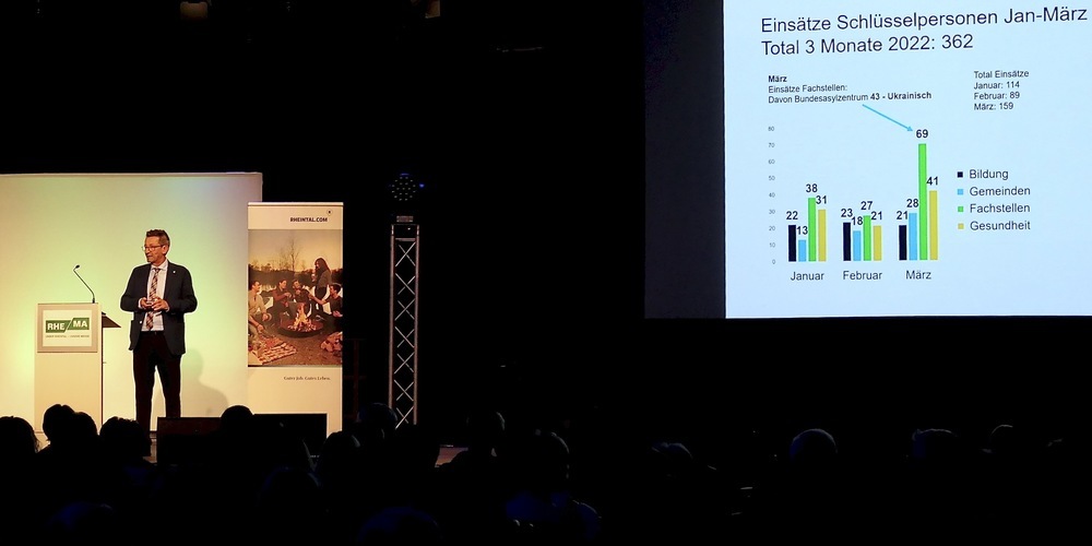 Sabina Saggioro gab als Geschäftsleiterin des veranstaltenden Vereins St.Galler Rheintal einen kurzen Rückblick über die Aktivitäten in den vergangenen drei Jahren. So auf die Aktion #srhintlstohtzäma. Bei der in einem Video die Rheintalerinnen und Rheintaler zeigten, dass sie auch während der Coronazeit in Verbindung bleiben. Dass wir im Rhintl die Nähe und die kurzen Wege in dieser Zeit kennen- und schätzen gelernt haben.