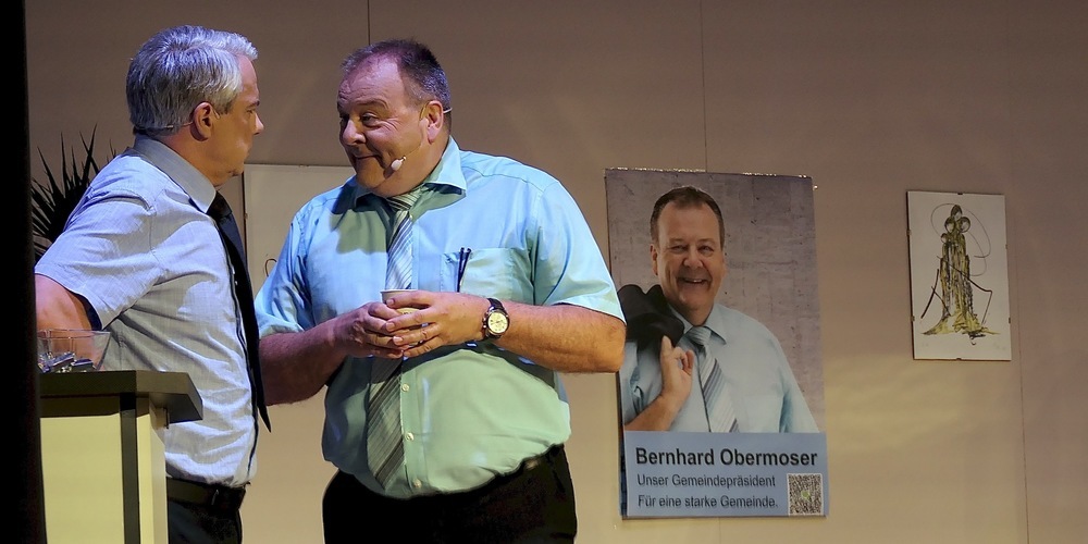Dem Dorftheater-Urgestein Bruno Zahnd ist die Rolle als Gemeindepräsident Bernhard Obermoser ja sowieso massgeschneidert auf den Leib geschrieben. Hatte er sich doch vor einigen Jahren selbst noch für das Amt des Gemeindepräsidenten von Au beworben. Er überzeugte auf ganzer Linie als Gemeindeoberhaupt, das zum ungünstigsten Zeitpunkt von einer alten Liebe heimgesucht wird, die ihm sogar eine bis dahin unbekannte uneheliche Tochter präsentiert.