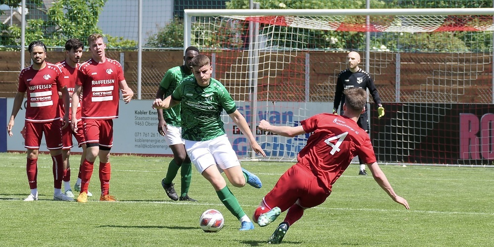 Es war ein gutes und animiertes Spiel, das in der ersten Halbzeit auf Augenhöhe geführt wurde und hin und her wogte. Mit Vorteil für Ruggell. Denn bei Montlingen haperte es mit der Spielauslösung von hinten. Ob kurz oder lang gespielt, zu viele der Pässe hinten heraus landeten bei einem gegnerischen Spieler oder im Aus. Und Montlingen blieb anfällig für Konterstösse. Wie dann in der 38. Minute. Der Liechtensteiner Micevski zog ballführend und dem Kolbensteiner Torhüter Pascal Wittwer entgegenstürmend alle Verteidiger auf sich. Kurzer Querpass zum allein heranbrausenden Ramon Adejumo Jimoh, der das leere Tor zur erneuten Führung gar nicht verfehlen konnte