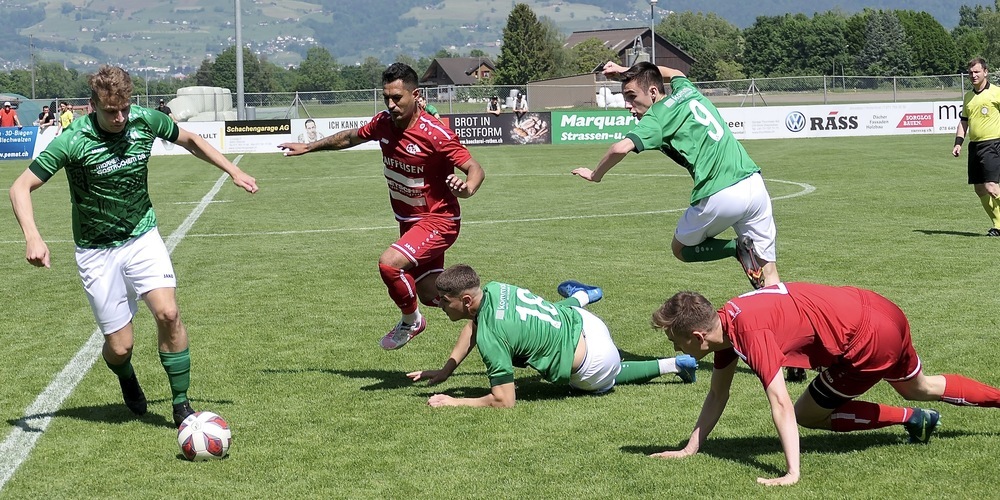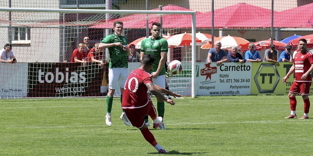 Und dann, nachdem die Roten mehrere gute Chancen nicht genutzt hatten, erlöste Menderes Caglar mit einer Direktabnahme direkt ins fussballerische Himmelreich von der Strafraumgrenze seine Mitspieler, den Staff und die Fans. 3:2. Die Gäste aus Ruggell, die dann natürlich in den letzten zehn Minuten ihre letzten Reserven mobilisierten, scheiterten wiederholt am gut spielenden Torhüter Pascal Wittwer.