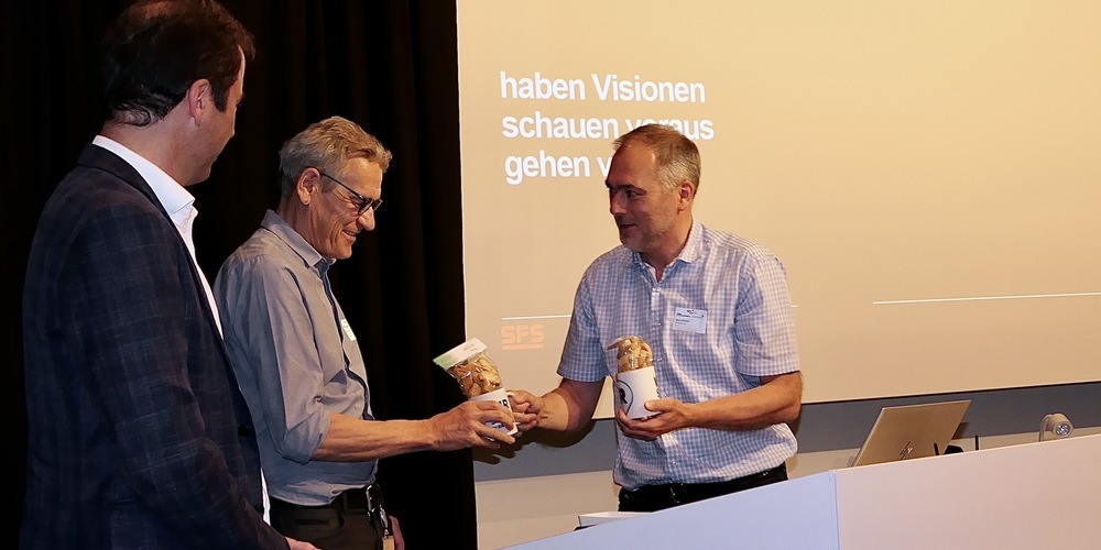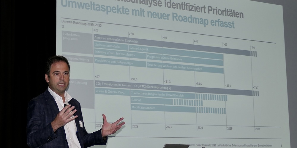 Gerade bei der SFS in Heerbrugg hat man sich schon früh der Errichtung von PV-Anlagen zugewendet. Schon 1988 wurde für den Betrieb von Elektrofahrzeugen ein kleine Anlage errichtet, die noch heute im Betrieb ist und insgesamt schon 50´000 kWh produziert hat, erzählte Peter Mayer, Head of technical services bei der SFS. Einen Neustart habe es dann ab 2011 gegeben. Seither wurden sieben Teilanlagen errichtet, die mit 25´000 m2 Solarflächen und einer Leistung von 4´300 kWh einen Selbstversorgungsgrad von 10 Prozent abdecken.
