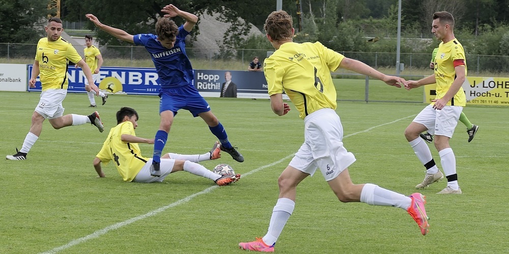 FC Rüthi: Hallauer; Kobler, Schnüriger, Yavuz, Koller; Zäch, Städler, Loher, Robin Sonderegger; Geisser, Junuzi.