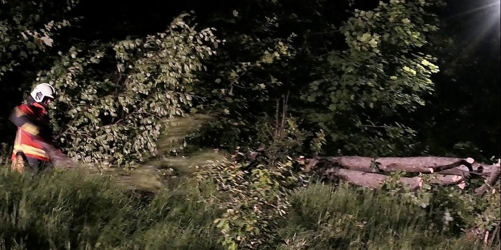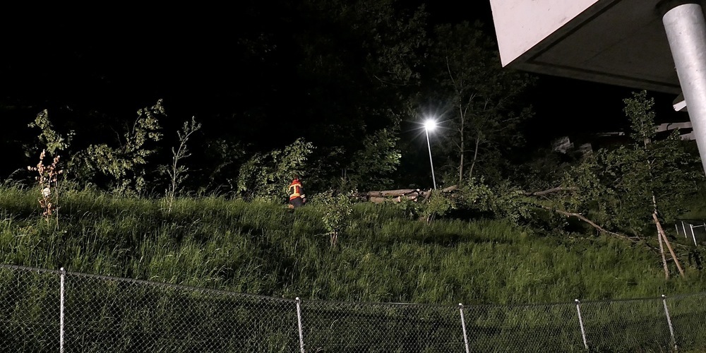 01:25 Uhr: Der Einsatz der Feuerwehr wird beendet. Der mächtige Baum ist in Einzelteile zerlegt und beidseits der Brändlihangstrasse deponiert. Die Strasse ist wieder für den Verkehr frei.
