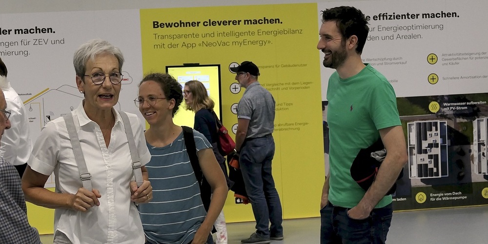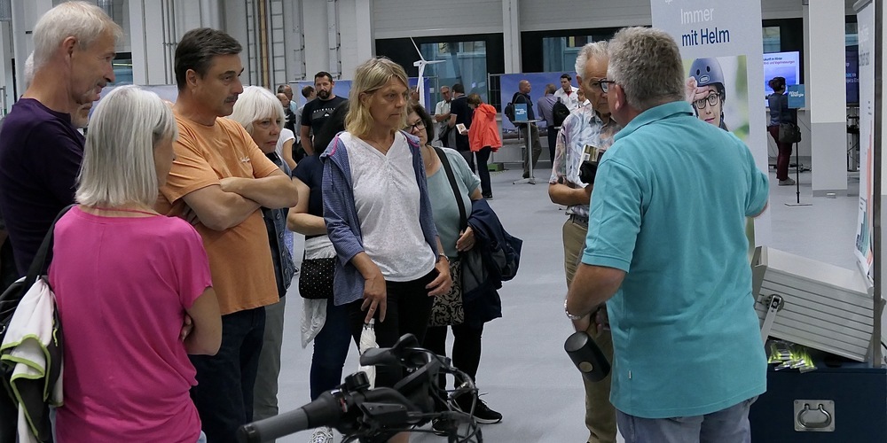 In der neu erbauten, aber noch nicht mit Maschinen bezogenen Halle waren mehrere Stationen zu bestaunen, bei denen es um Sicherheit, Reaktionsfähigkeit, Arbeitsschutz und Unfallverhütung, eine Ideenbox für die Mitarbeiter, die an Velofahrer vom Unternehmen verteilten Ecopoints, Solarenergie und natürlich um Windkraft ging.