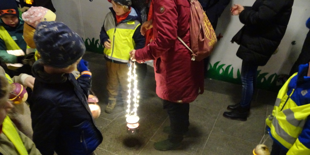 Der Weg in Rebstein führte vom Bergschulhaus über Torkel-, Mühlener- und alte Landstrasse auf den Dorfplatz. Der Umzug wurde von zwei Tambouren angeführt, die rund zweihundert Kinder mit ihren Laternen und ihre vielen Begleiter folgten .