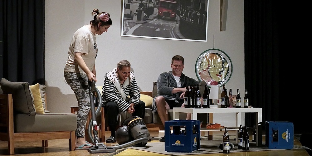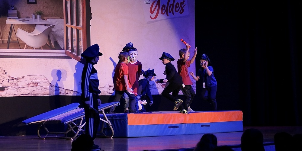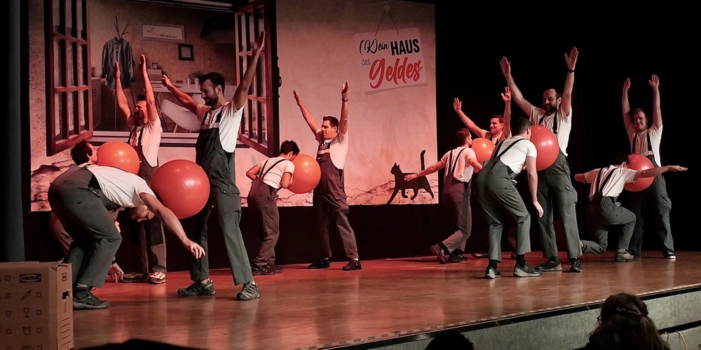 Da muss man eben die Besenkammer an einen weiteren Mitbewohner vermieten, dann triffts doch jedem weniger Kosten. Dennoch wird ein Bankraub unvermeidlich. Das Thema dieser Zwischenspiele wurde dann jeweils in der folgenden Turnvorführung aufgegriffen. So etwa nach dem Einzug des vierten WG-Bewohners, als die Aktivriege der Männer als Umzugsarbeiter auf die Bühne kamen und Möbel durch die Gegend schupften.