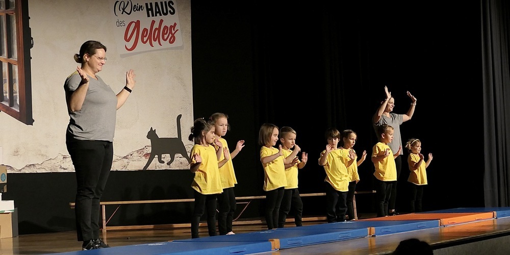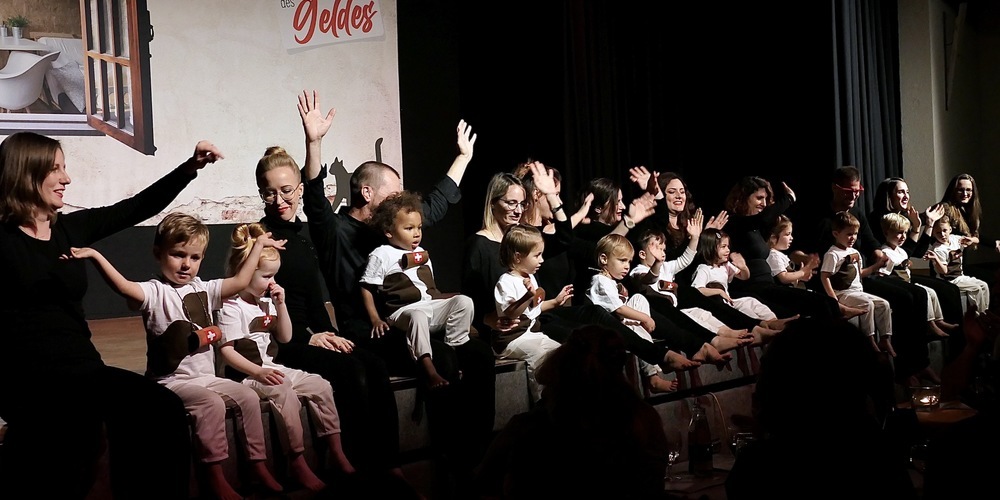 Grosses Gelächter gabs im Publikum, als die Männer je zu zweit einen grossen Gymnastikball mit vollem Körpereinsatz zwischen sich bewegten. Muss man gesehen haben. Ganz herzig dann das nach der Meerschweinchen-Episode von der Mutter-Kind auf die Bühne gebrachte Motto «Haustiere», zu dem die Kleinsten zeigten, was sie in den gemeinsamen Übungsstunden mit Mami oder Papi schon gelernt haben.
