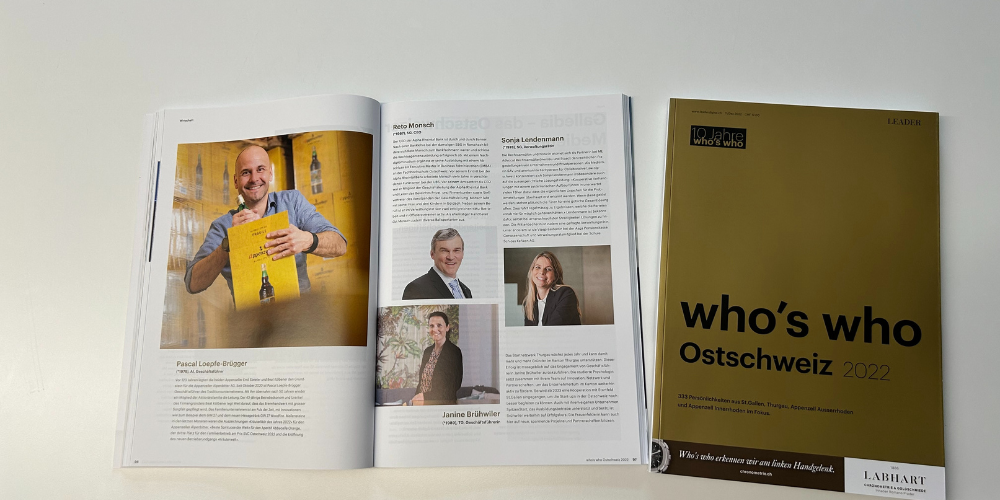 In der gerade erschienenen aktuellen zehnten Ausgabe des «who’s who der Ostschweiz» werden inzwischen über dreihundert Persönlichkeiten aus den Kantonen St.Gallen, Thurgau und beiden Appenzell, die sich um die Ostschweiz besonders verdient gemacht haben, vorgestellt. Sie haben sich durch ihr Wirken wirtschaftlich, politisch, wissenschaftlich, bildungstechnisch oder gastronomisch hervorgetan. Sämtliche bisher porträtierten Ostschweizerinnen und Ostschweizer finden Sie auf dem Onlineportal who-s-who.ch.
