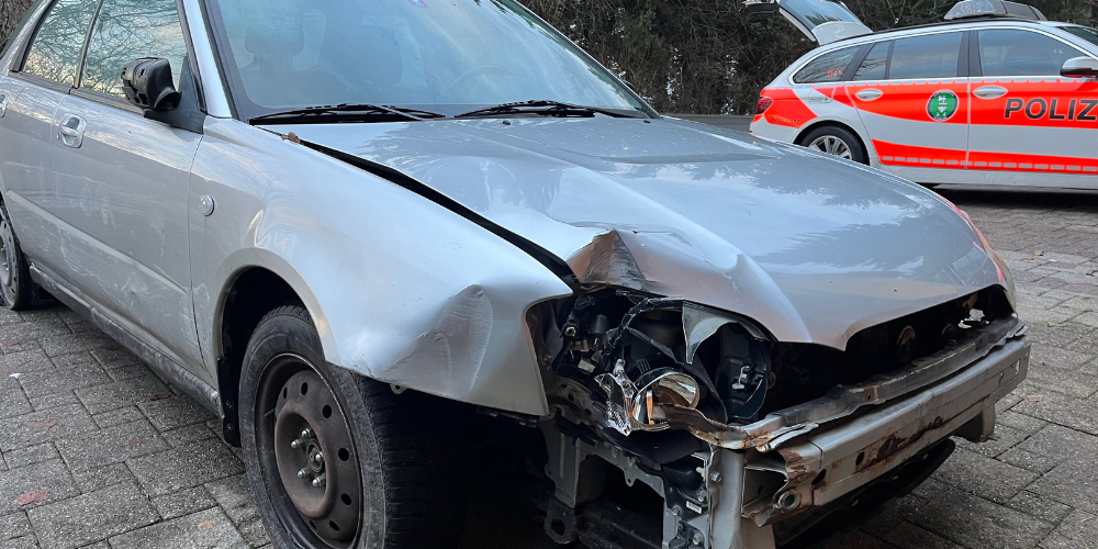Patrouillen der Kantonspolizei St.Gallen wurden auf einen Autofahrer auf der Appenzellerstrasse aufmerksam gemacht. Eine Privatperson konnte beobachten wie ein 62-jähriger Mann mit einem Auto von der Appenzellerstrasse in Richtung Wolfhalden fuhr. Gemäss der Auskunftsperson sei das Auto mehrfach auf die Gegenfahrbahn geraten. Zudem sei das Auto stark beschädigt und nur noch zwei Reifen intakt.