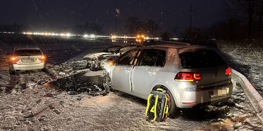 Es kam zur Frontalkollision der beiden Autos. Hinter der Frau fuhr ein 23-jähriger Mann mit seinem Auto. Er konnte rechtzeitig abbremsen und wich auf die Gegenfahrbahn aus. Dort prallte sein Auto in das abgewiesene, unfallverursachende Auto.