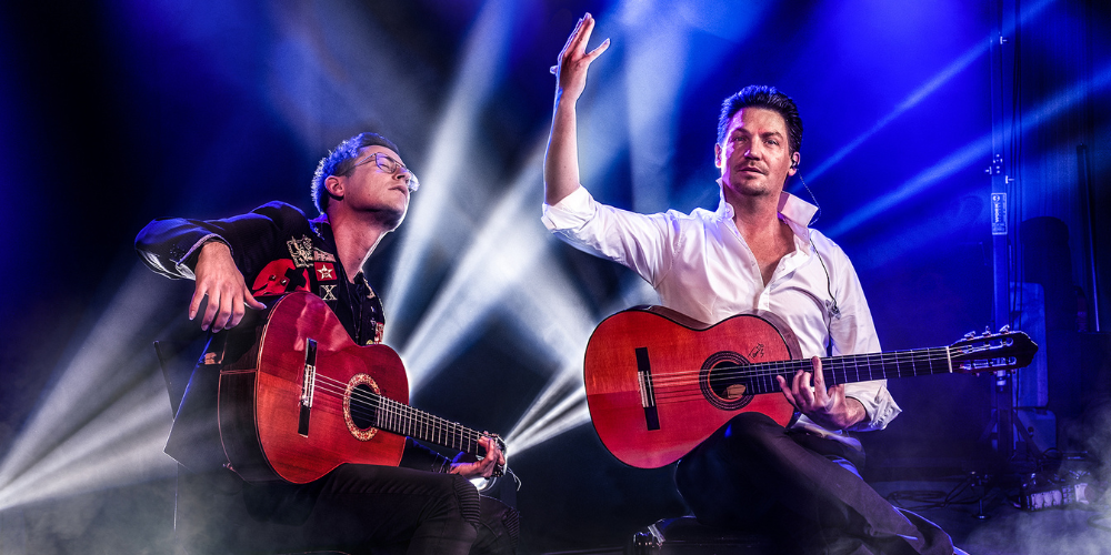 Die Protagonisten Jan Pascal und Alexander Kilian sind grundsätzlich gegensätzlich wie Feuer und Wasser – und doch ergänzen sie sich gerade dadurch zu einem Music Act auf Weltniveau. Ihr gemeinsamer Live-Auftritt ist der mitreissende Dialog zweier begnadeter Virtuosen, die sich bald umschmeicheln, bald herausfordern und einander ihr Bestes entlocken – intensiv und explosiv entsteht eine magische Aura, der sich niemand entziehen kann. Doch die beiden Instrumental-Künstler sind weit mehr als bloße Unterhalter: In ihrer Kunst beziehen sie Haltung, bekennen sich zur puren, originären Musik, setzen ein Statement in einer fluide fluktuierenden Welt. Lassen Sie sich überraschen von der unglaublichen musikalischen Vielfalt zweier Flamenco-Gitarren mit einem Repertoire, das ein feines Band zwischen Klassik und Jazz, Techno und World Music bindet.