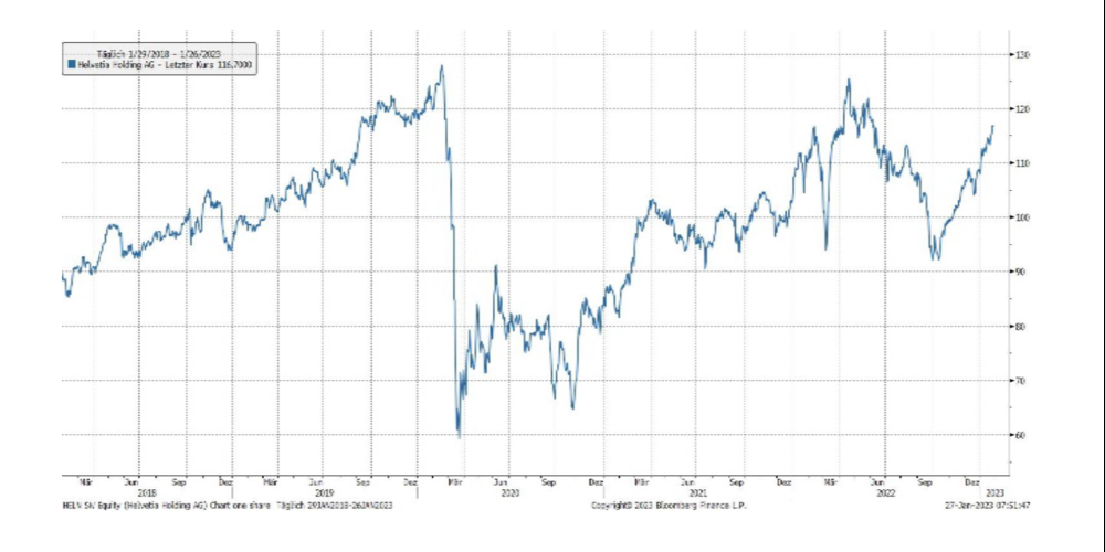 «Helvetia ist in den Bereichen Leben-, Schaden- und Rückversicherungen wie auch Risiko- und Vorsorgelösungen tätig. Helvetia blickt auch ein erfolgreiches Halbjahr 2022 zurück. Sie ist erneut profitabel gewachsen und verzeichnet starke versicherungstechnische Resultate. Helvetia konnte sich im letzten, sehr schwierigen Börsenjahr behaupten. Die Aktie war mit 5.06% im Plus, während der SMI -16.67% verlor. Im laufenden Jahr wird eine weitere operative Verbesserung erwartet und die bereits tiefe Bewertung bietet so einen gewissen Schutz gegen sinkende Aktienkurse.