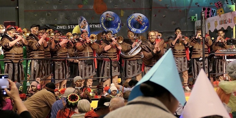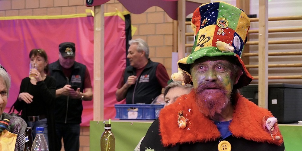 Jene Begleitpersonen, die nicht kostümiert waren, hatten zumindest einen Papierhut auf dem Kopf. «Alle, die gekommen sind, erhalten gratis Wiener Würstel, Faschingskrapfen und Getränke», so David Morscher im Gespräch, «Und alle Helfer arbeiten ehrenamtlich. Auch die Bazzaschüttler und Otmar Schneider kommen seit Jahren unentgeltlich zu uns. Da muss ich nicht einmal mehr fragen.»