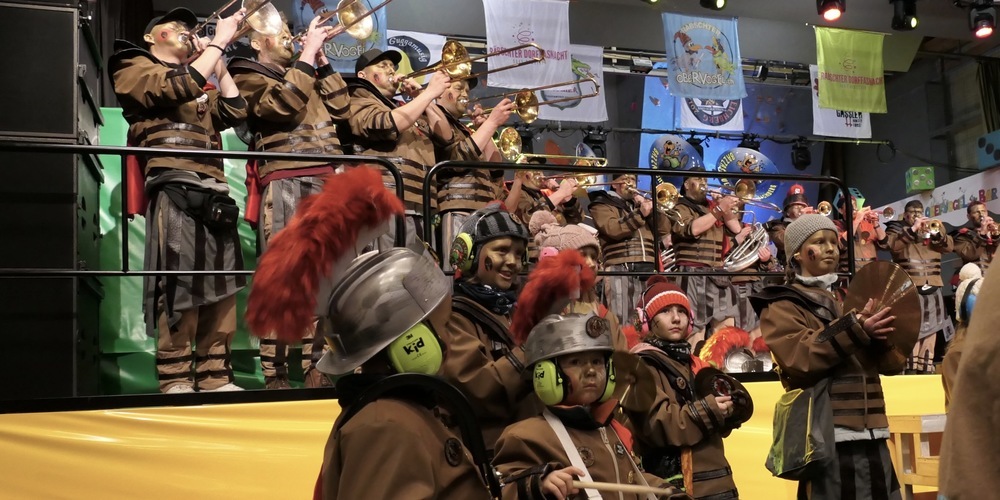 Optimal natürlich, dass die Progyhalle ohnedies an diesem Datum bereits für den samstäglichen Maskenball geschmückt ist. Dass die Verpflegungsstation aufgebaut ist und die liebevolle Fasnachtsdekoration für ein buntes Bild sorgt.