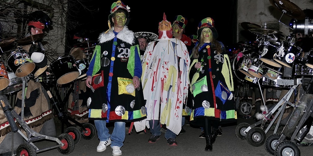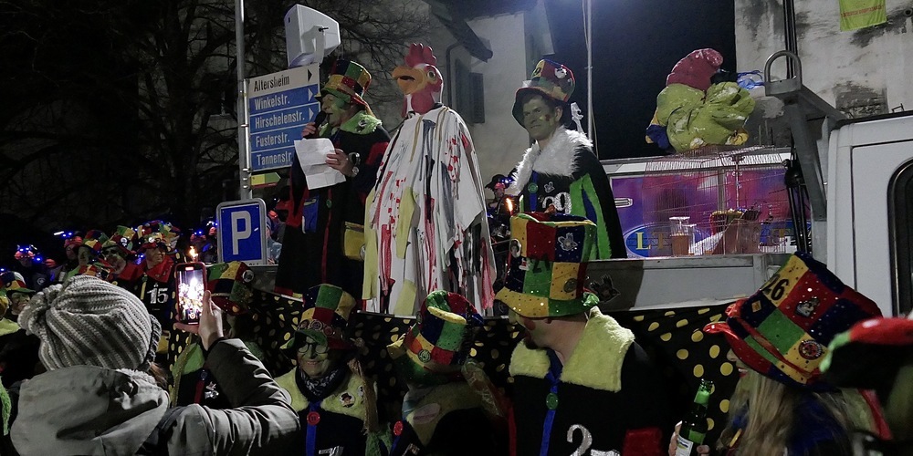 Aber mit der Vorstellung auf dem Dorfplatz war es für das Küken, den bemitleidenswerten neuen Obervogel noch nicht getan. Musste er doch mit seinen Mitvögeln noch weiter in die Rebsteiner Beizenfasnacht abtauchen.