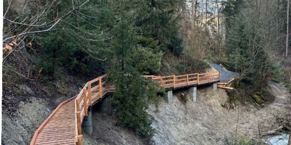 Die Gesamtkosten für die Erneuerung des beliebten Wanderwegs belaufen sich auf rund CHF 360'000. Weil der regionale Wanderweg durch Elementarereignisse beschädigt wurde, übernimmt der Kanton 75 Prozent der Kosten und leistet einen werkgebundenen Beitrag von rund CHF 270'000.