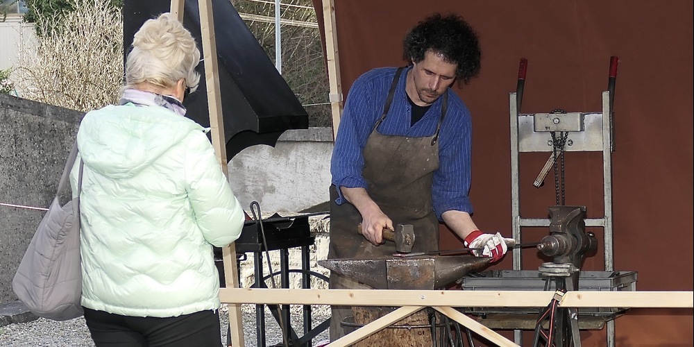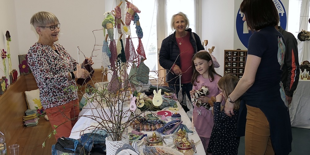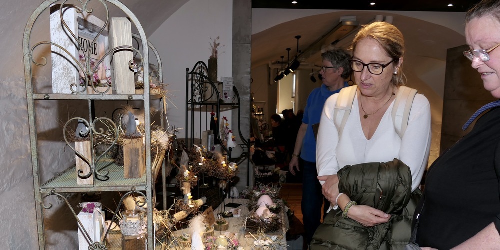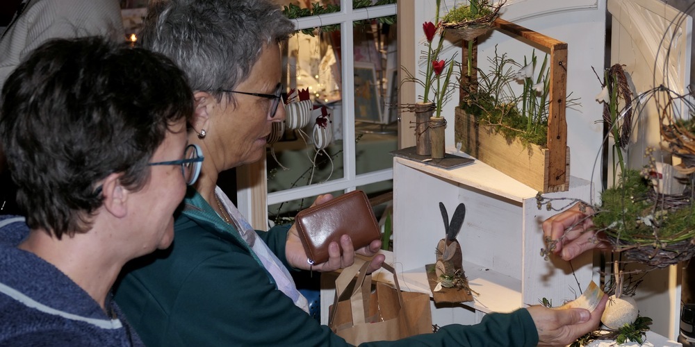 Hinter Edeltraud Krämer aus Herisau stand ein Regal mit Tongefässen, welche im speziellen Raku-Brand-Verfahren gefertigt worden waren. Leute seien bisher schon sehr viele gekommen, erzählt ihre Begleiterin Careen von Son, aber verkauft habe man nur wenig. Vielleicht haben sich die Leute ja ihre Kauflaune auf Sonntag aufgehoben, wenn von 11 bis 17 Uhr der Osterkunsthandwerkmarkt erneut seine Tore öffnet. Hingehen, und sich verzaubern lassen, es rentiert sich.