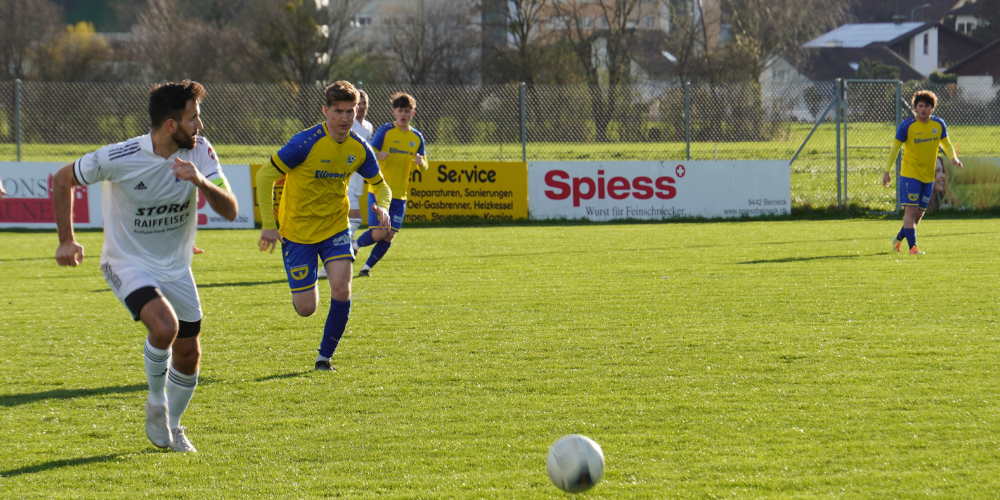 Im Februar begannen die Umbauarbeiten auf der Sportanlage Degern. Bis August 2024 trägt die erste Mannschaft der Auer die Heimspiele auf dem Trainingsplatz aus. Der FC Au-Berneck 05 startete auf dem neuen Untergrund mit viel Elan in die Partie. Bereits nach drei Minuten ging die Hafner-Elf in Fürung: Nach schöner Vorbereitung von Popescu zog Bojaxhi alleine Richtung Tor und versenkte das Leder zur frühen Auer Führung.