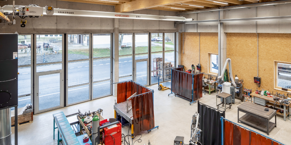 Das neue Unterhalts- und Handwerkszentrum (UHZ) der Strafanstalt Saxerriet ersetzt verschiedene kleine dezentrale Werkstätten. Die geräumigen Platzverhältnisse ermöglichen ein zeitgemässes Arbeiten und bieten bis zu 18 Arbeitsplätze für inhaftierte Personen. Diese können so ihre beruflichen Qualifikationen in der Schlosserei, der Reparaturwerkstatt, der Malerei oder der Schreinerei erweitern.