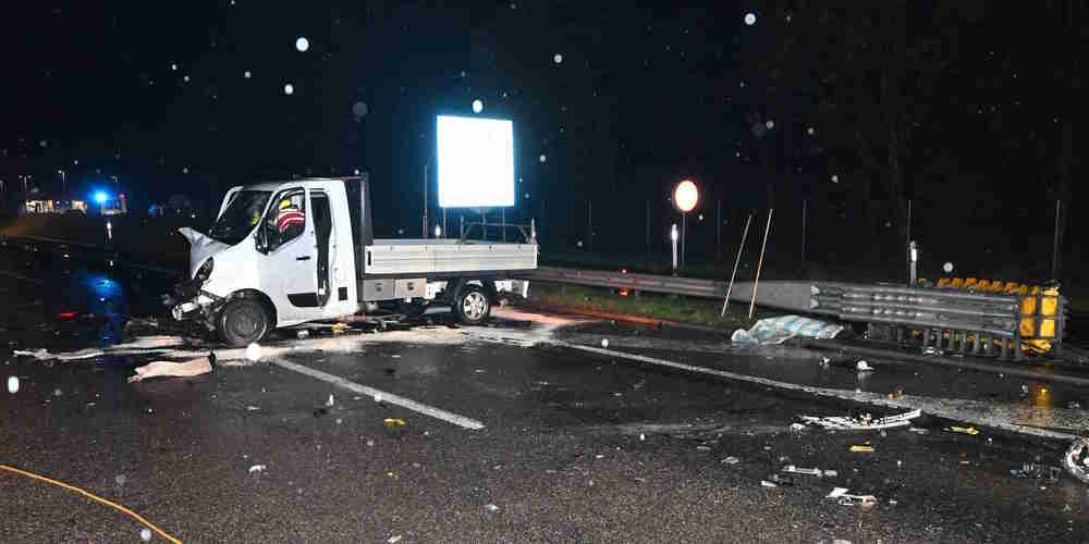 Bei der Ausfahrt zum Rastplatz Kriessern kollidierte er mit dem Fahrbahnteiler, woraufhin es den Lieferwagen drehte und dieser quer zur Fahrtrichtung zum Stillstand kam. Kurze Zeit später fuhr ein 33-jähriger Mann mit fünf Mitfahrern im Alter zwischen 16 und 27 Jahren von Widnau Richtung Kriessern. Trotz eines Ausweichmanövers konnte der 33-Jährige die frontale Kollision mit dem unbeleuchteten Lieferwagen nicht mehr verhindern.