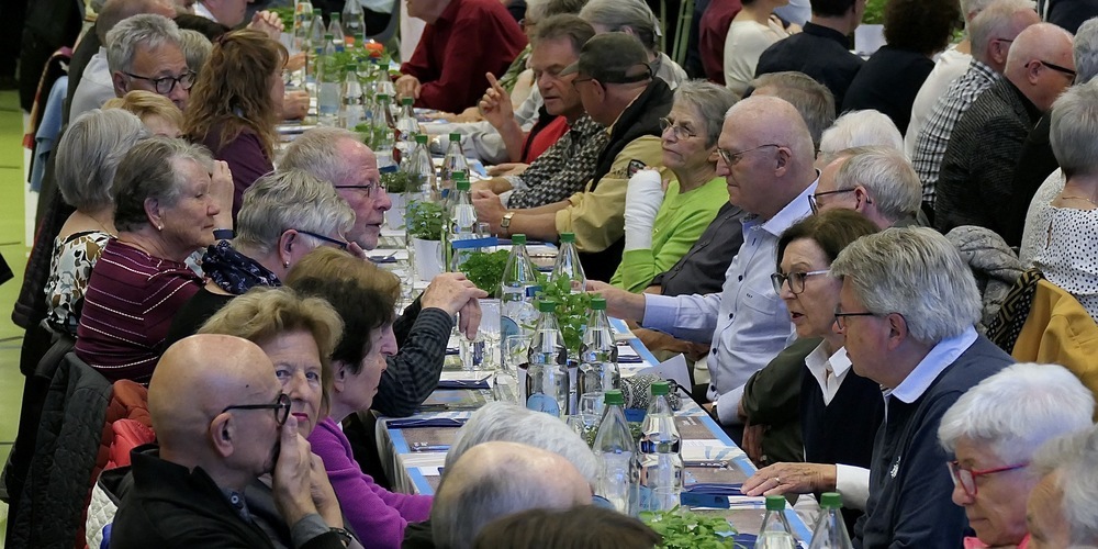 Nach dem offiziellen Teil der Generalversammlung wurde das traditionelle Essen serviert. Eine logistische Meisterleistung bei annähernd 1´200 hungrigen Mägen. Und zwischen den einzelnen Gängen wurde es kurzweilig. Denn Renato Kaiser, bekannter und beliebter Komiker und Satiriker, unterhielt die Genossenschafterinnen und Genossenschafter mit Ausschnitten aus seinem aktuellen Programm.