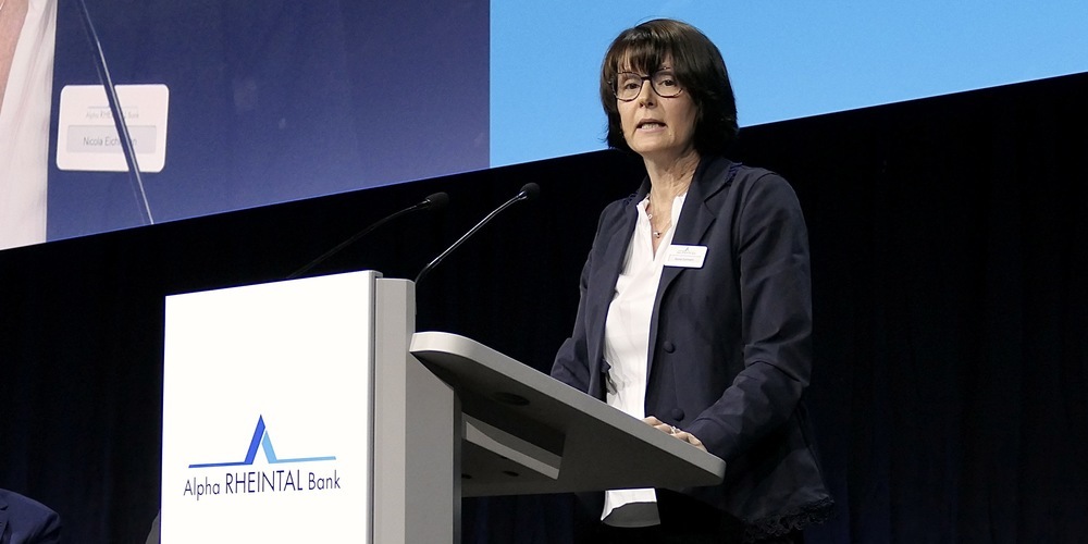 Nach den diversen Abstimmungen richtete Verwaltungratspräsident Stefan Frei Dankesworte an Nicola Eichmann, die seit 1996 dem Verwaltungsrat zunächst der Spar- und Leihkassa Balgach und dann der Alpha Rheintal Bank angehört hatte. Zu ihrer Nachfolgerin wurde von der Generalversammlung Frau Denise Becker aus Widnau, eine ausgewiesene Expertin mit langjähriger Erfahrung und Kenntnissen im Wirtschaftsprüfungs- und Revisionsumfeld gewählt.