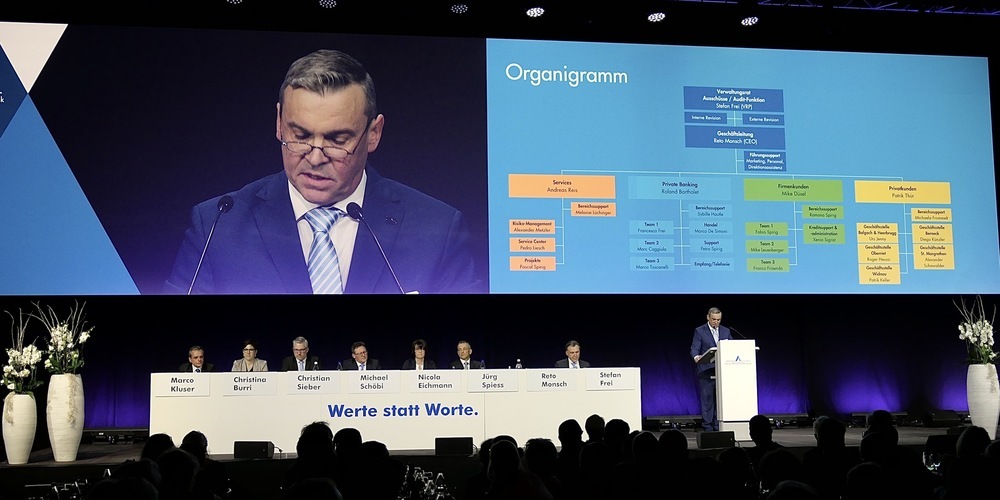 Der VR-Präsident kam auch kurz auf das Umfeld zu sprechen, in dem sich die Alpha Rheintal Bank als Regionalbank derzeit bewege. «Für die Banken wurde mit dem Niedergang der CS erneut eine schwierige Zeit eingeleitet. Das war ein schwarzer Tag für den Finanzplatz und die Reputation der Schweiz.» Doch das Vermögen der Kunden sei nach wie vor sicher. «Jedoch - über allem steht das Vertrauen.» Und dieses zeige sich ganz besonders in der Beziehung zur Kundschaft der Bank und insbesondere zu den Aktionären.