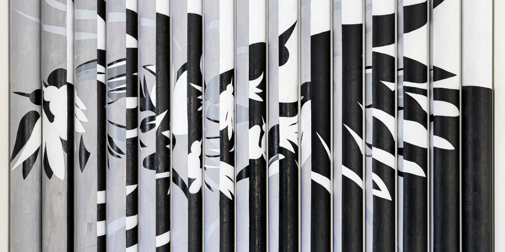 Ein Rollenbild besteht aus vielen aufgereihten Bildrollen, die ein Gesamtbild ergeben. Jede Bildrolle ist drehbar. Nun geht es um Interaktion. Der Betrachter darf das Kunstwerk verändern, indem er die nebeneinander aufgereihten Bildrollen nach Belieben dreht. So entstehen unzählige neue Bilder.