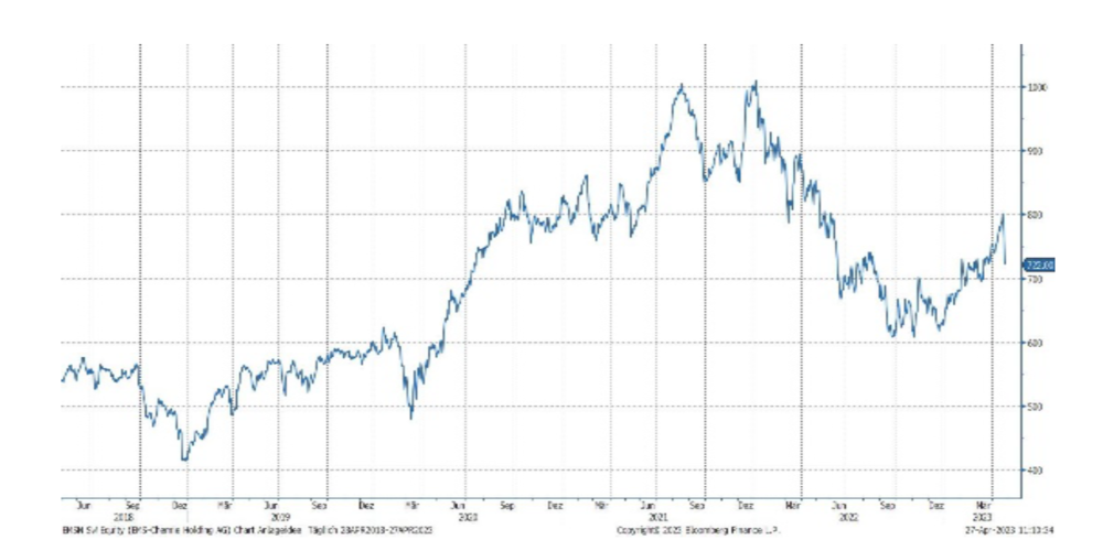 Kurs am 27.04.2023 CHF 712.00; 52 Wo Hoch/Tief CHF 887.00/591.50; Valor 1.644.035; Geschätztes KGV 2023: 31.18x; Dividendenrendite ca. 2.95%.
