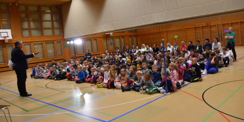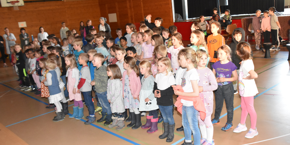 In nur zweimal 40 Minuten hatten die Schülerinnen und Schüler vom Kindergarten bis zur Oberstufe in unterschiedlichen Gruppen Fantastisches geschaffen. Die Darbietungen waren bereits ausgefeilt und voller Fröhlichkeit. Eröffnet wurde die Stunde mit dem Chor von Kindergarten und Unterstufe, gar mit Solo Singenden. Danach folgte eine ausserordentliche Trommel-Demonstration mit verschiedenen Rhythmen begleitet von einer Trompete. Nach der Kickhop-Vorführung mit verschiedenen Formationen zeigte Beatboxer Denis auf, dass ganze Geschichten damit erzählt werden können. Dann kam der Auftritt der Breakdance-Gruppe mit akrobatischen Einlagen. Den Abschluss machten die Oriental Pop-Gruppen mit farbenfrohen Fächern und Stäben. Schulleiter Daniel Wyder dankte dem OK mit Vreni Bänziger, Patricia Fritsch, Heidi Gisler und Jürg Wickart, SSASSA und allen Schülerinnen und Schülern für die wunderbaren Darbietungen.
