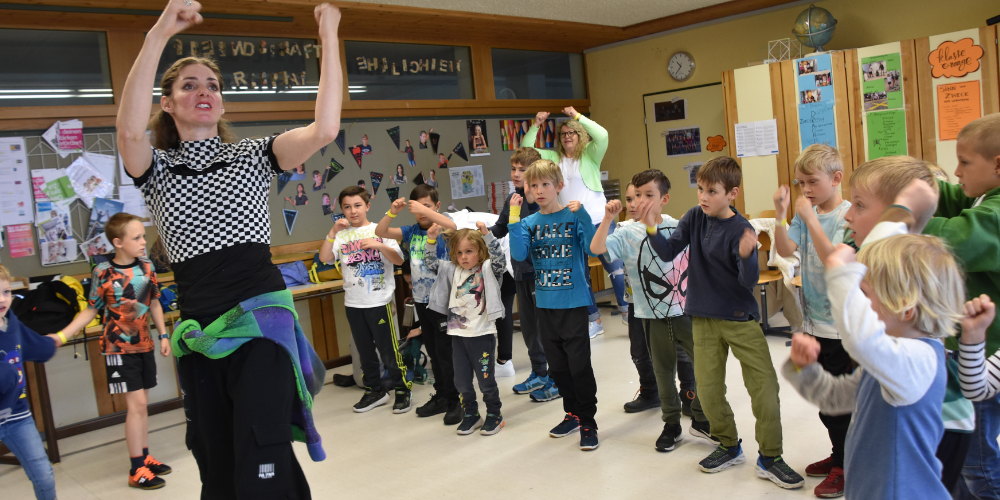 Music Schulpräsident Markus Pfister sagte eingangs: «Heute wollen wir euch zeigen, was ausserhalb der Schweiz für musikalische Kulturen bestehen. In der kurzen Zeit sollt ihr fremde Rhythmen klatschen, in anderen Sprachen singen und zu exotischer Musik tanzen.» Und das taten sie. Beim orientalischen Tanz galt es mit Tüchern und Stäben zu tanzen, aber auch Körperbeherrschung war angesagt. Dasselbe dann beim Breakdance. Bald gab es Bewegungs-Kombinationen zu bestaunen. Desgleichen beim Kickhop, wo gleich drei Elemente zusammenkamen: Karate, Hip Hop und Gebärdensprache. Fingerfertigkeit und Taktgefühl waren beim Trommeln gefragt. Letzteres auch beim Singen in den verschiedensten Sprachen. Ob Klein oder Gross, Musik und Tanz begeisterten. Gar in den Pausen wurde geübt. Zur Vorstellung der einzelnen Auftritte waren am Nachmittag die Eltern geladen. Sie erwartete ein Feuerwerk an Farben, Formen, Tönen und Sprachen.