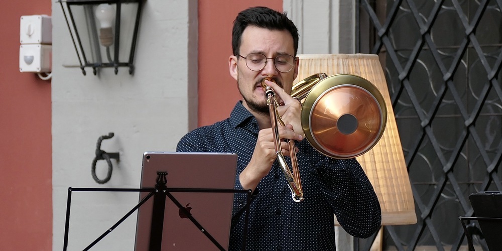 Der Komponist des nächsten von PrimeBrass vorgetragenen Stücks war hauptberuflich Ingenieur und hat Musik nur als Hobby betrieben. Aus dem schmalen kompositorischen Oeuvre von Viktor Ewald sind heute denn auch hauptsächlich seine Blechbläserquintette bekannt, deren Opus Nr.3 im Löwenhof zur Aufführung kam. Und von den Bläsern von PrimeBrass perfekt vorgetragen wurden.