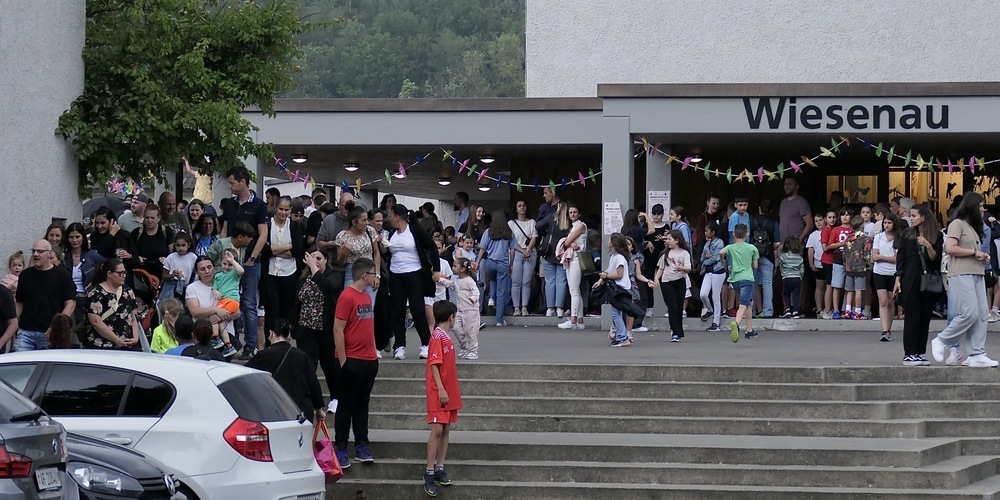 Auch heuer hatten die «Wiesenauer» wieder zu einem Schulfest geladen. Aber offensichtlich wurde auf eine Einladung an Petrus vergessen. Denn nach wochenlanger Schönwetterperiode begann es ausgerechnet pünktlich zur Eröffnung des Fests wieder zu regnen.
