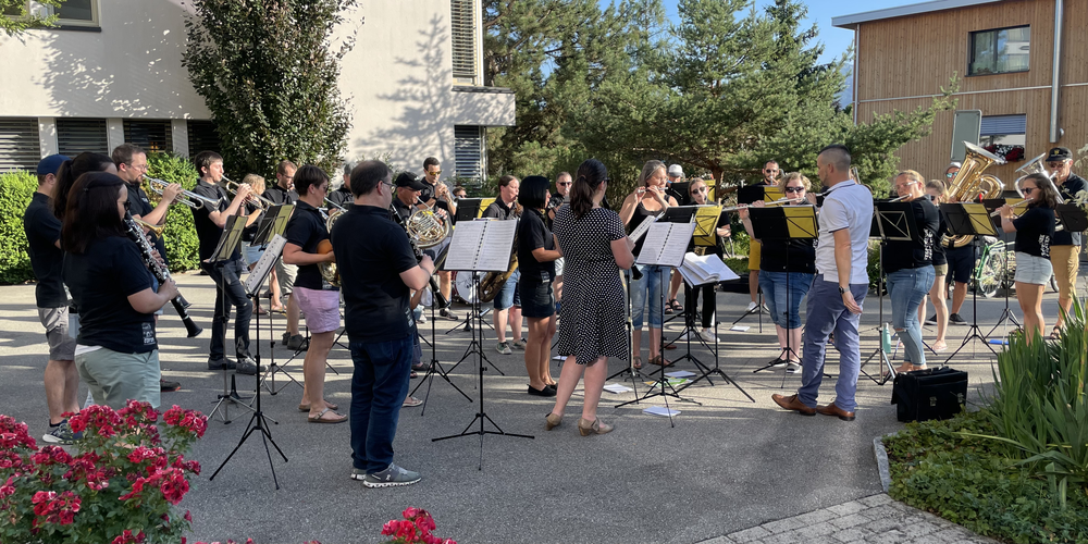 Am Freitag danach stand dann das Konzert bei der Cafeteria beim Haus Sonnengarten auf dem Programm. Da das Wetter mitspielte, konnte das Ständli im Freien gemacht werden und die Heimbewohner in der Gartenwirtschaft den schönen Abend bei Musik geniessen.