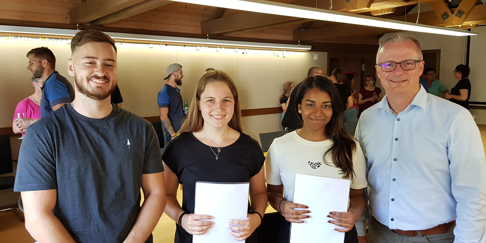 An der internen Lehrabschlussfeier vom 21. Juli durften Celine Kuhn, Shameena Sivakumar und Ramon Salvisberg die Gratulationen des gesamten Personals für ihren erfolgreichen Lehrabschluss entgegennehmen. Gemeindepräsident Simon Diezi zeigte in seiner Ansprache auf, dass den drei jungen Berufsleuten nun «die Welt offensteht».