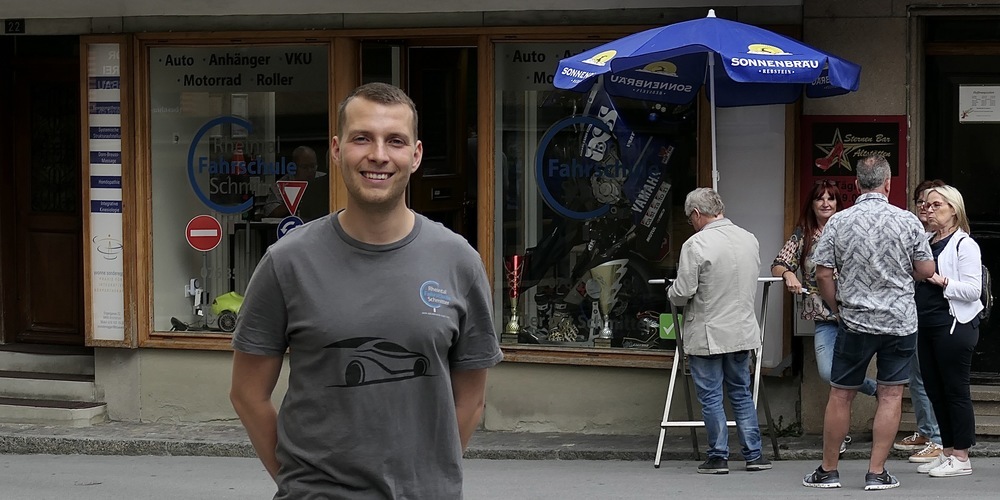 «Ich habe meinen Traumberuf gefunden», erklärt ein strahlender Dominic Schmitter, «es macht ganz einfach mega Spass, die jungen Fahranfänger zu unterrichten.» Was er mit Erfolg macht, haben doch in seinem ersten Jahr als Fahrlehrer nur zwei seiner Eleven die Prüfung nicht geschafft. «Ich bin derzeit auch mehr als ausgebucht…».