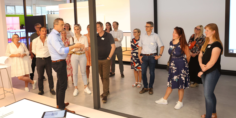 Dabei handelt es sich um die ehemalige Produktionshalle des weltweit tätigen Lichtkonzerns, welche mitten in der Coronazeit zum 70-Jahr-Firmenjubiläum um acht Millionen Euro zum beeindruckendem Showroom umgestaltet wurde.