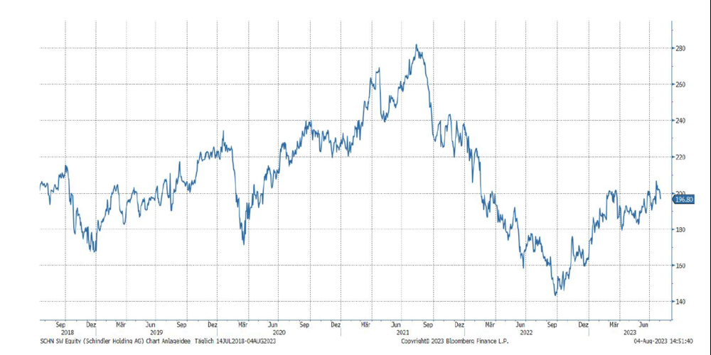 Kurs am 10.08.2023 EUR 624.20; 52 Wo Hoch/Tief EUR 698.10/375.75; Valor 19.531.091; Geschätztes KGV 2024: 31.86x; Dividendenrendite ca. 1.06%.