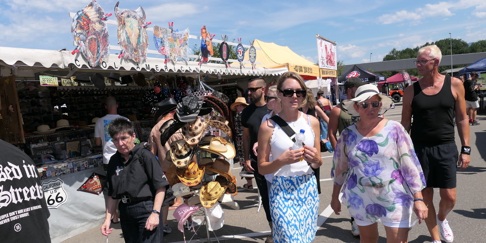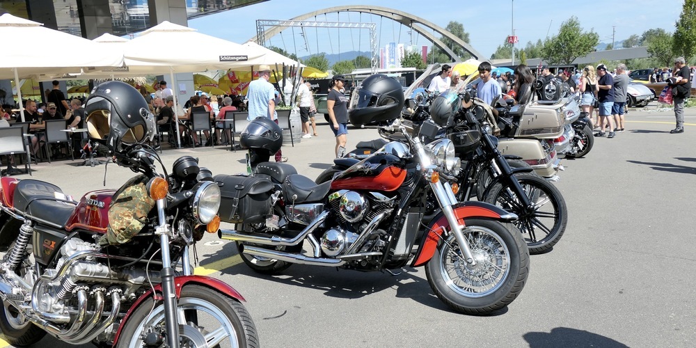Es gibt kaum schönere Autos. Autos, die sofort Assoziationen an die Route 66 oder an das Cruisen auf schnurgeraden Strassen durch die ewigen Weiten des Mittelwestens wecken. Autos, die mit ihrer schlichten Schönheit die neuzeitlichen durch die Aerodynamik glattgelutschten charakterlosen Elektrokarossen vor Scham erblassen lassen. Wie auch die zahlreichen amerikanischen Motorräder, die Harley-Davidsons, Indians oder Buells. Flankiert von etlichen Honda Goldwings. Die zwar nicht aus den USA stammen, aber den American Way of Life bestens verkörpern.