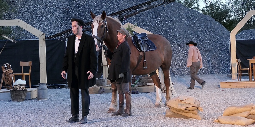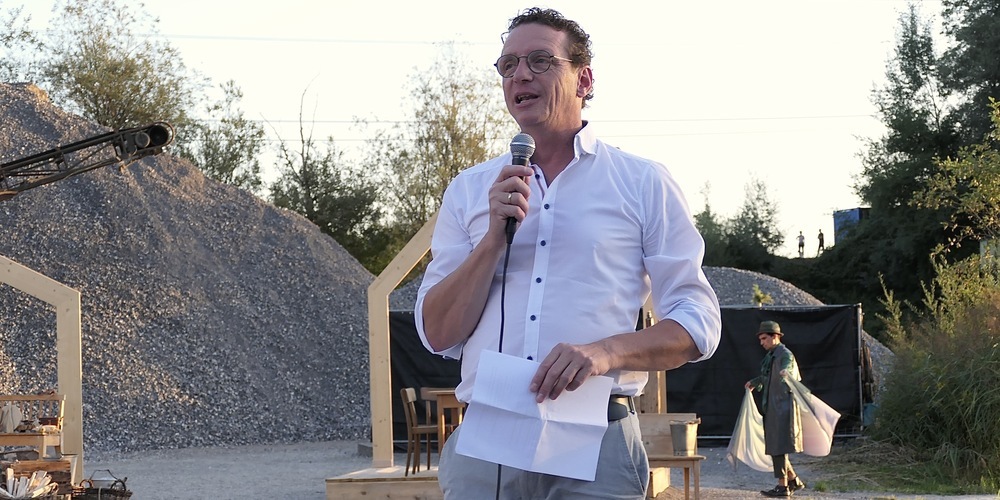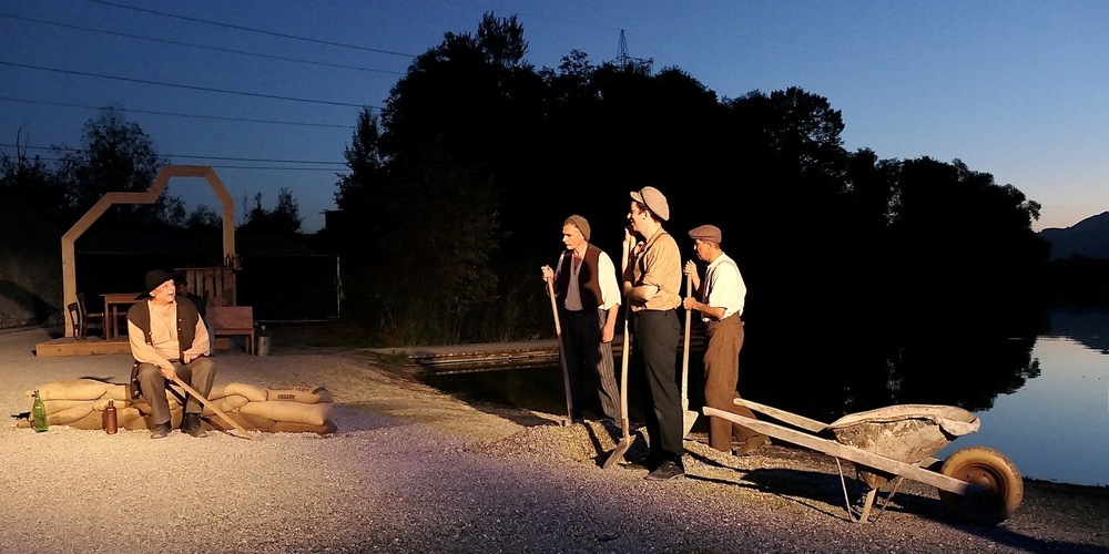 Die rund 180 Besucher in der ausverkauften Aufführungsstätte beim Altacher Kieswerk Kopf wurden von einer wunderbaren Stimmung, die die untergehende Sonne auf die prächtige Naturlandschaft zauberte, empfangen. Und sowohl vom Altacher Bürgermeister Markus Giesinger als auch vom Diepoldsauer Patrick Spirig als Präsident des Vereins «100 Jahre Diepoldsauer Rheindurchstich» mit einleitenden Worten begrüsst wurden.